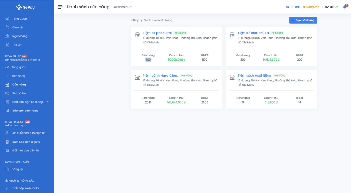 SePay eShop: Phần mềm bán hàng và xuất hóa đơn điện tử