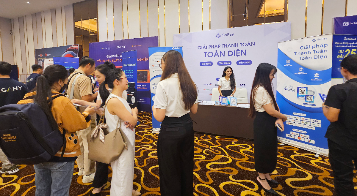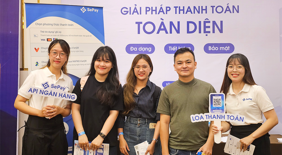 Tại gian hàng của SePay trong khu vực Triển lãm Giải pháp AI & Automation, khách tham dự có thể nhận tư vấn trực tiếp các giải pháp thanh toán thông minh, từ giải pháp thanh toán VietQR, VIETQRPay đến thanh toán thẻ quốc tế Visa/MasterCard/JCB, chia sẻ biến động số dư,..cùng các công cụ hỗ trợ doanh nghiệp tự động hóa quy trình nhận thanh toán, đối soát và báo cáo giao dịch.