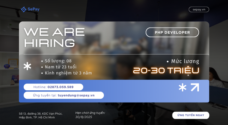 - Vui lòng gửi CV và thư ứng tuyển (nếu có) về email tuyendung@sepay.vn với tiêu đề:
